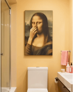 Zapomnij o nudnych, ogólnych krajobrazach, którym brakuje osobowości. Ta dowcipna parodia słynnej Mony Lisy dodaje odrobinę wyrafinowanego humoru, który natychmiast poprawia nastrój każdemu odwiedzającemu.